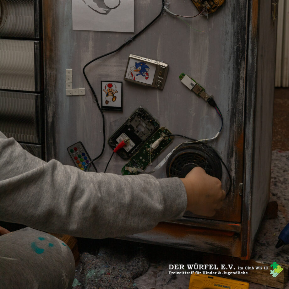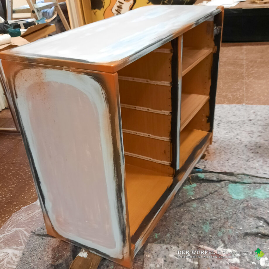 In der Woche vom 05.-09. Februar 2024 haben wir mit unseren Ferienkindern die Möbel im Club WK III aufgearbeitet. Professionelle Anleitung gab es dabei von Wenke Richter, bei der die Kids wieder allerhand handwerkliche Kniffs und Tricks vermittelt bekamen – „Kreativmalerei Wenke Richter“ sowie der Crew vom Club WK III des „Würfel e.V.“.
